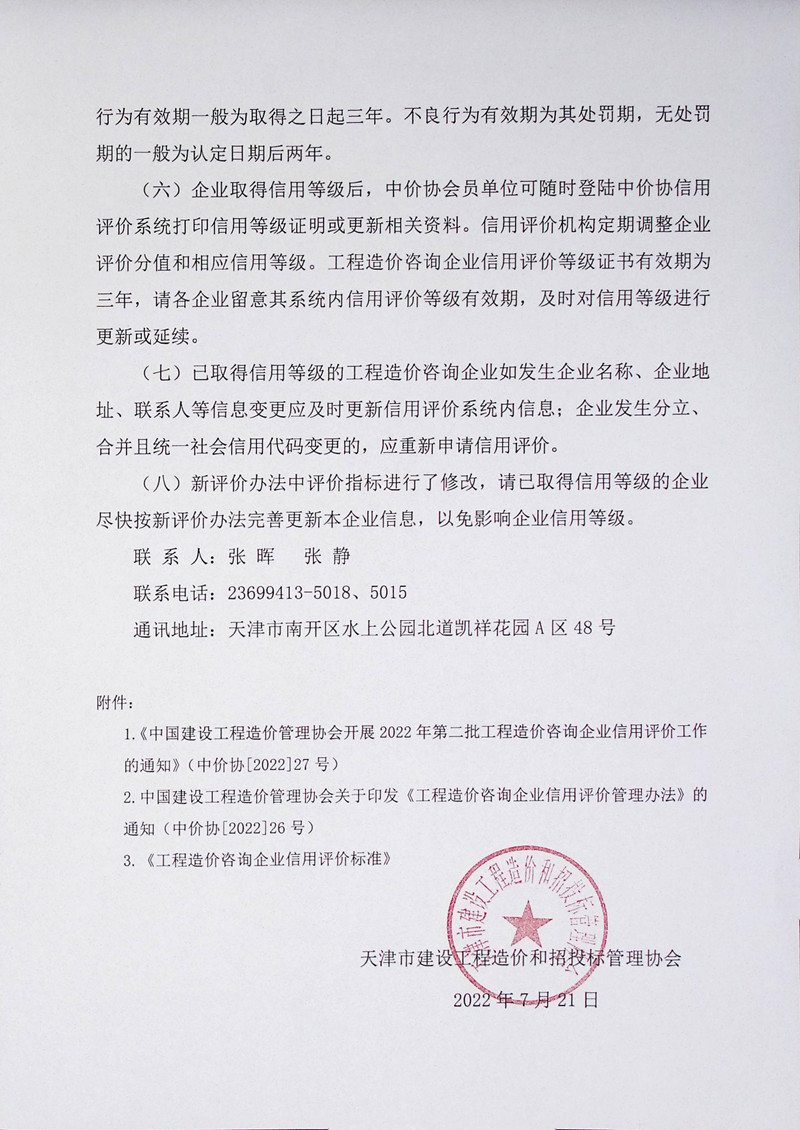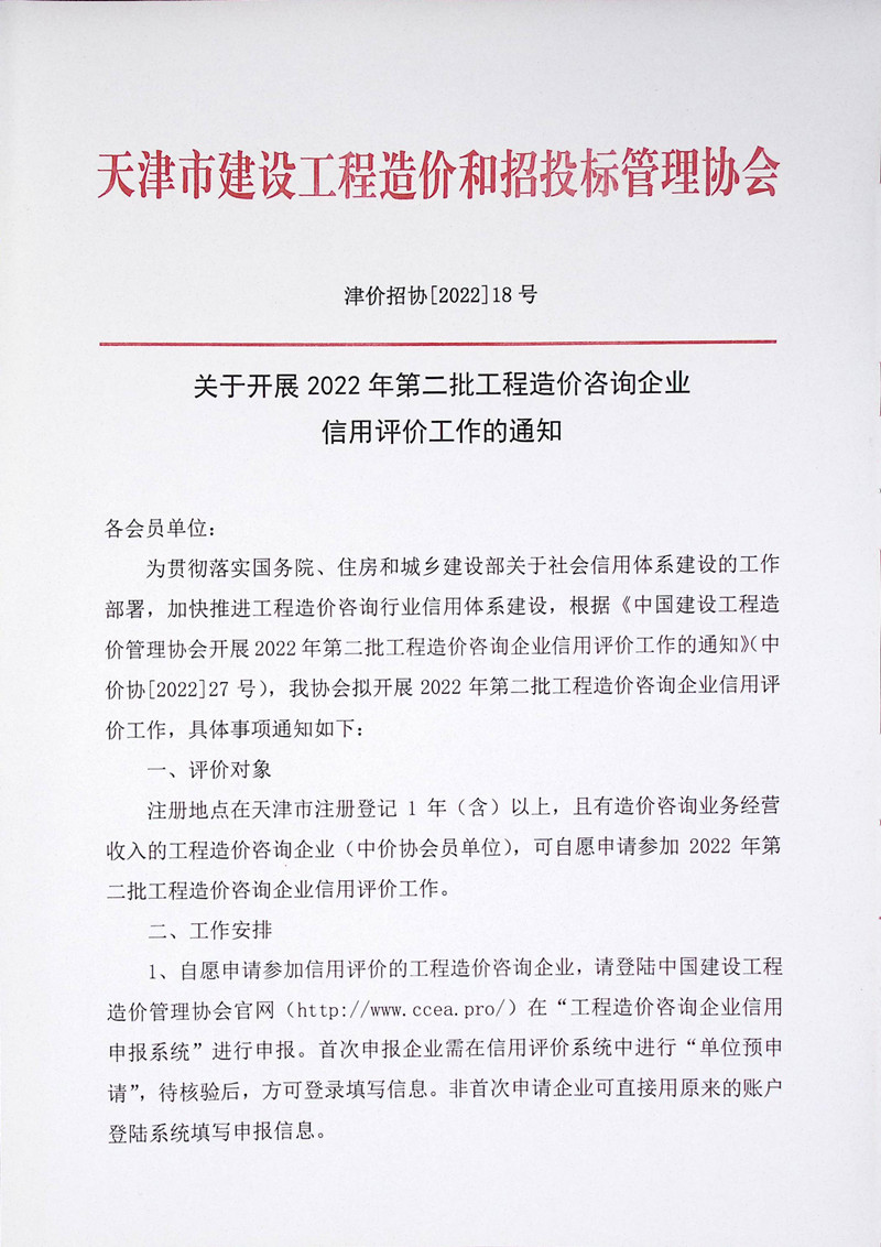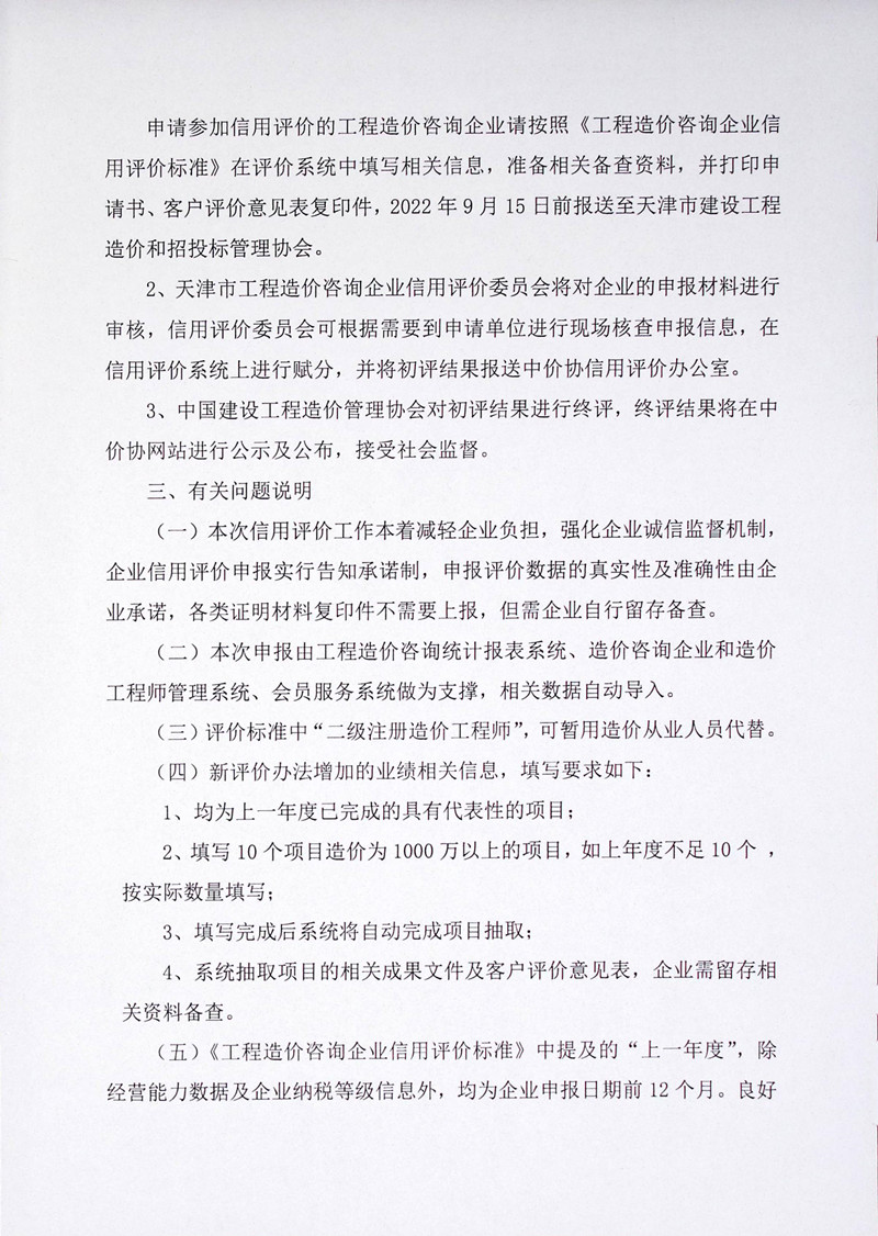 關(guān)于開(kāi)展2022年第二批工程造價(jià)咨詢企業(yè)信用評(píng)價(jià)工作的通知